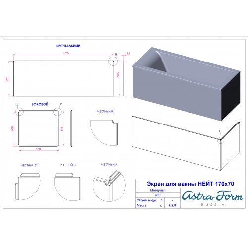 Лучшие цены. Ванна Astra-Form "Нейт", 170х70 см, белого цвета - это идеальное решение для комфортного и простого использования. Изготовлена из искусственного камня и имеет прямоугольную эргономичную форму, позволяющую использовать ее для купания и других целей. Регулируемая высота ножек обеспечивает индивидуальную настройку под потребности каждого пользователя. Данная модификация ванны доступна в левом и правом исполнении, что обеспечивает ее удобство для использования. Магазины в вашем городе.