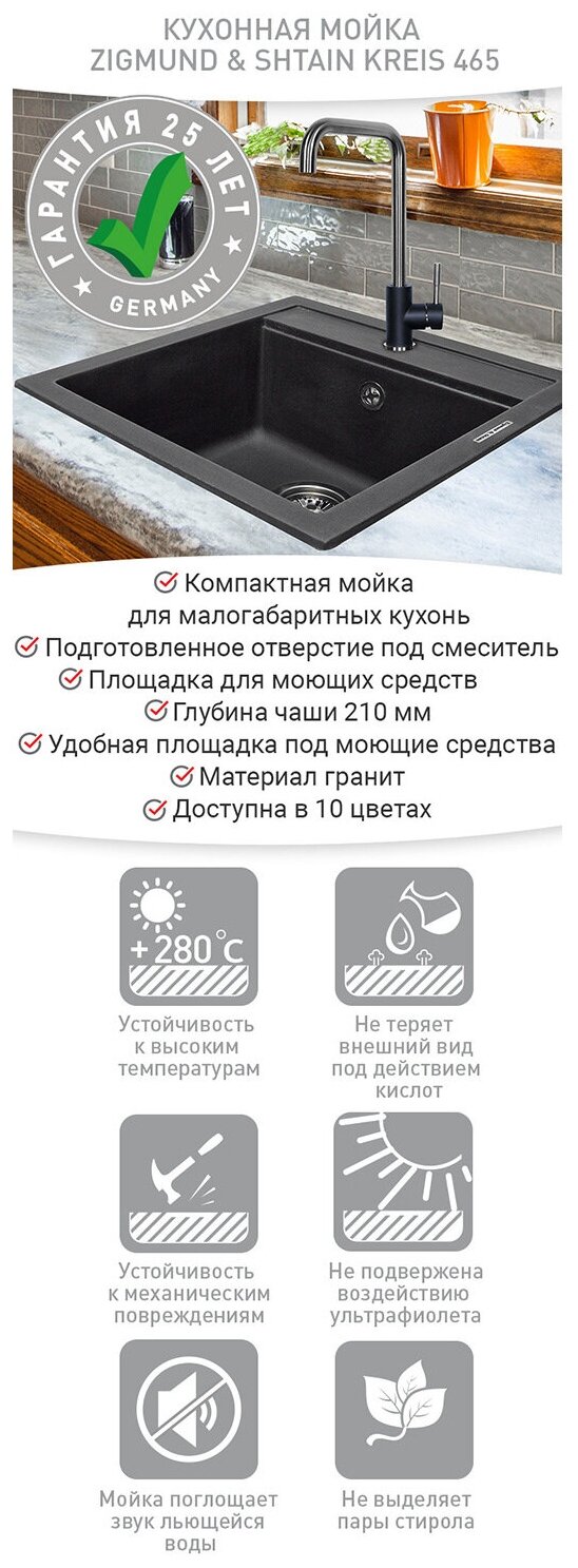 Мойка Zigmund Shtain Platz 465 черный базальт 9 482 ₽ Подробнее