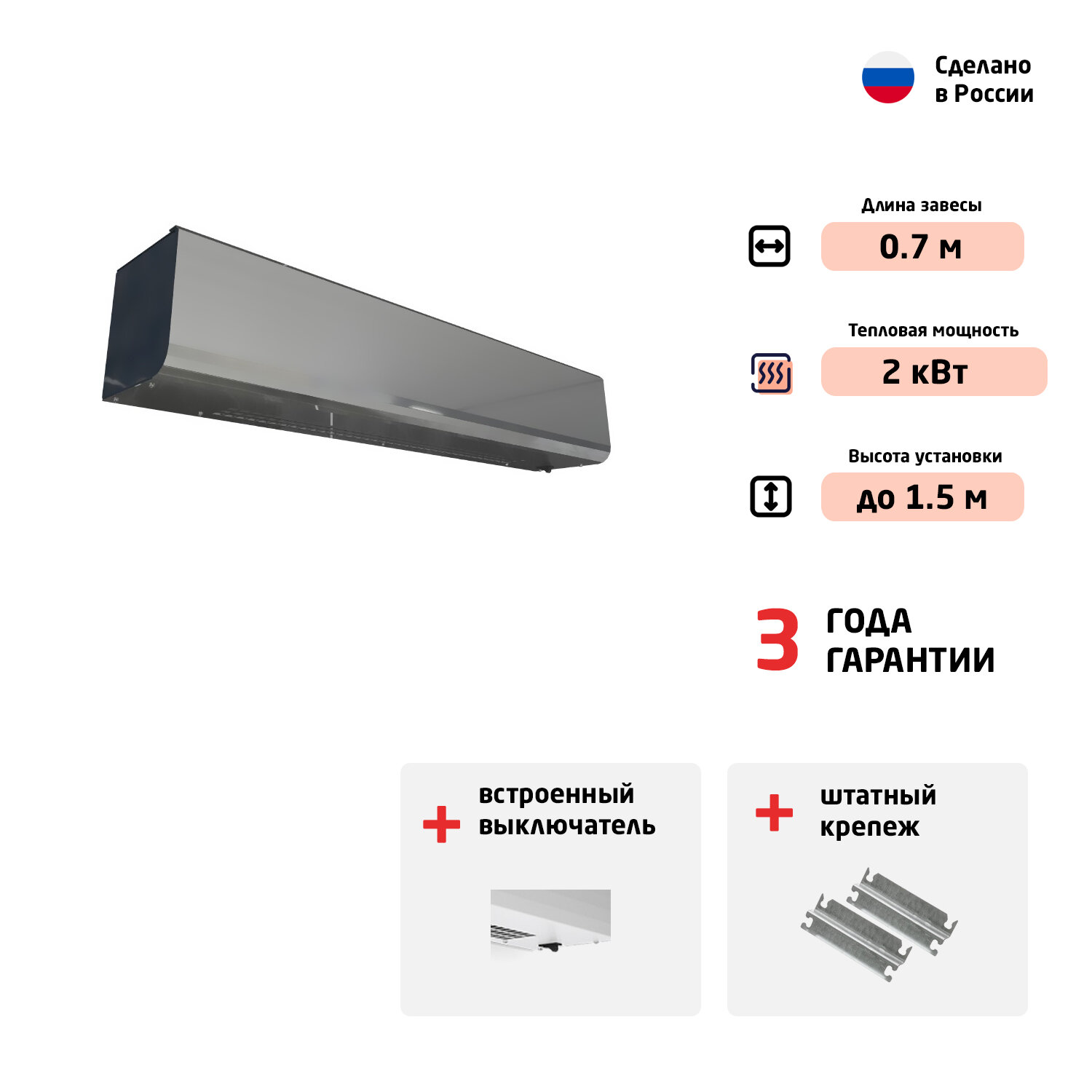 Лучшие цены. Компактная тепловая завеса Бриллиант Микро для проемов высотой до 1.5 метров. К корпусу завесы подключен питающий кабель длиной 1.6 метра, с евровилкой. Размеры корпуса 705 x 140 x 130 мм, позволяют разместить воздушно-тепловую завесу в ограниченном пространстве над окнами выдачи таможенных пунктов, охраны, пекарен, бистро, магазинов, киосков. Верхнее всасывание воздуха обеспечивает чистоту передней панели. Устройства управления встроены в корпус. Магазины в вашем городе.