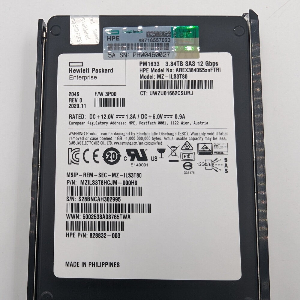 SSD накопитель SSD диск AREX3840S5XNFTRI, MZILS3T8HCJM-000H9, MZ-ILS3T80, PM1633, 828832-004, Samsung, HP, SAS, 3.84TB, С шифрованнием