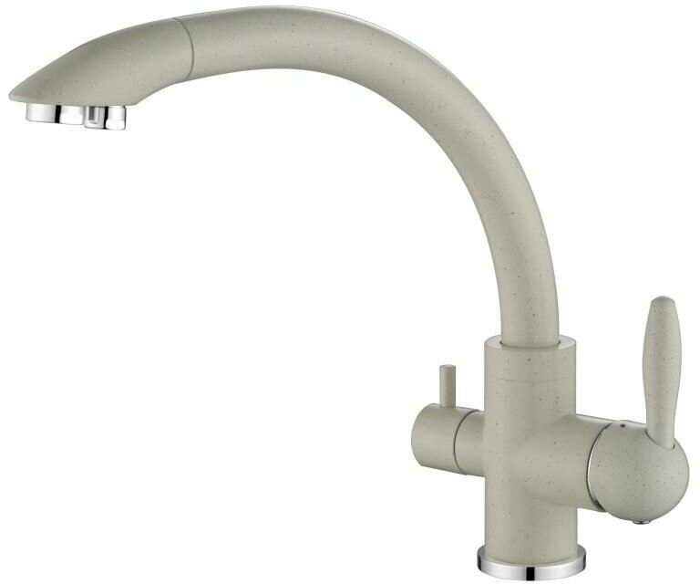Смеситель для кухни Paulmark ESSEN, подключение к фильтру питьевой воды с отдельным каналом и выпуском, поворотный излив, латунь, на мойку / столешницу, бежевый, Es213001-328