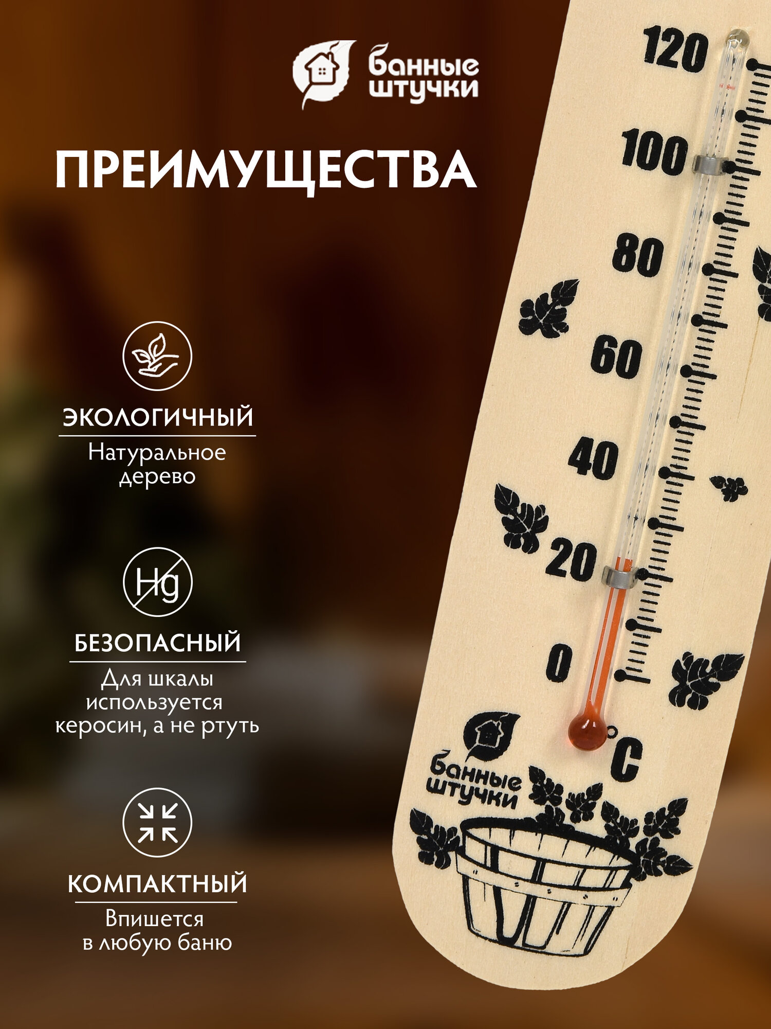 Банные штучки Термометр Банный веник 17,5х4х1 см для бани и сауны / 10 18050