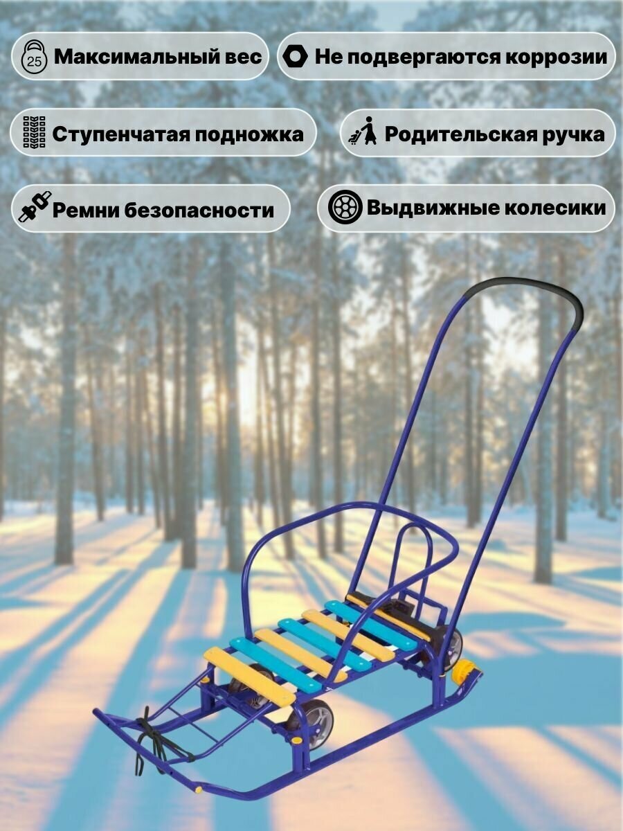 Санки Тимка 5 Универсал Т5У/С2 синий /Ника/ спинка, толкатель, колеса