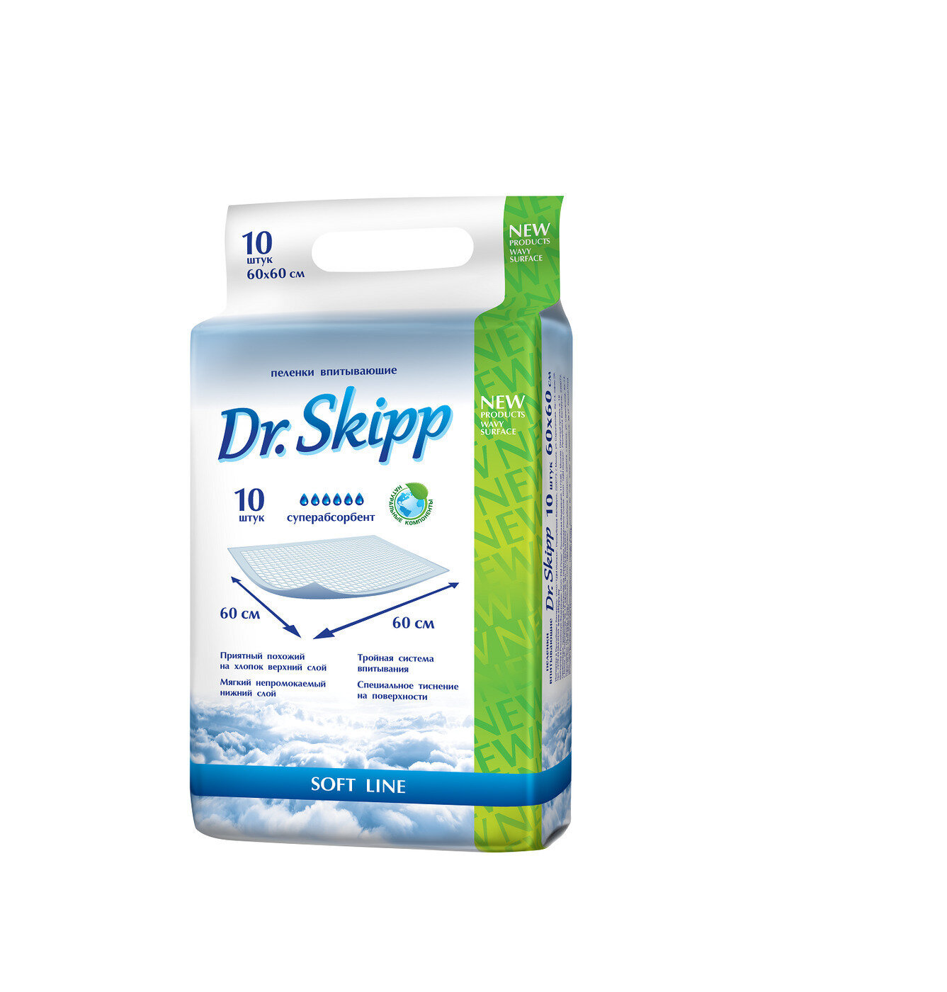 Подгузники Пеленки одноразовые Dr.Skipp Soft Line, р-р 60 x 60 10шт.
