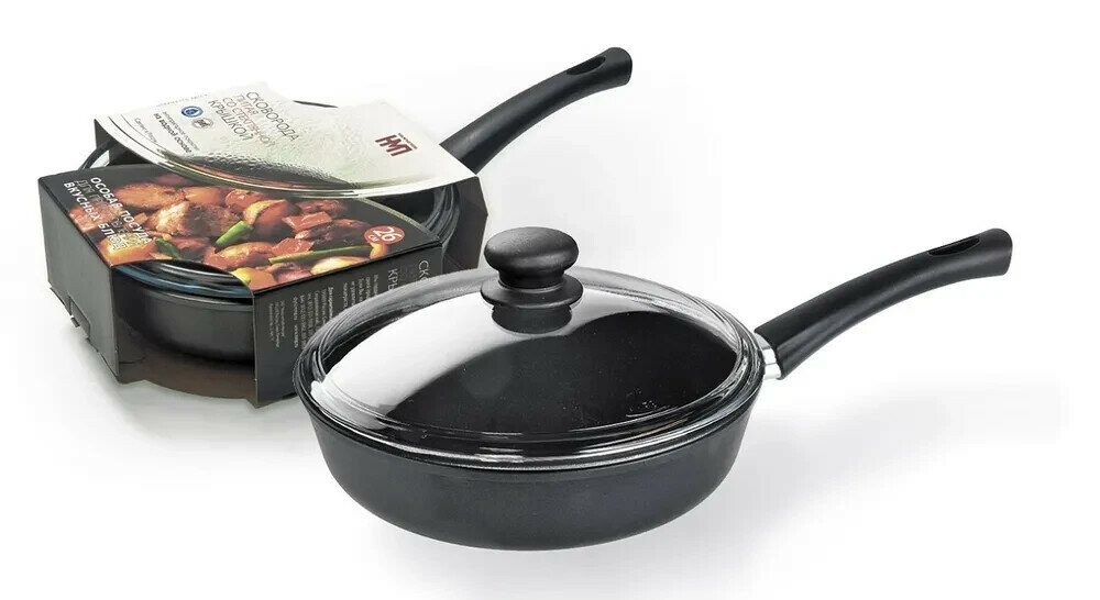 Сковорода НМП 7728 28 ПР литая со стекл. крышкой