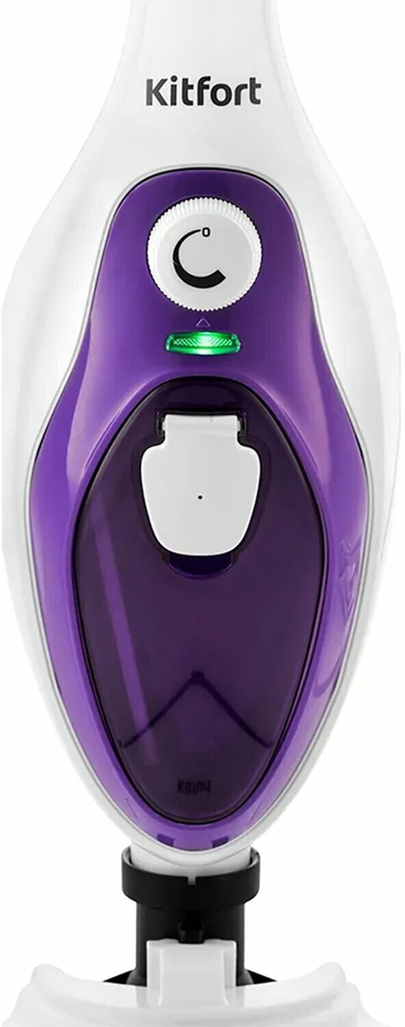 Пароочиститель Паровая швабра KITFORT KT-1004-4, 1500 Вт, 1 бар, объем 0,35 л, белая/фиолетовая
