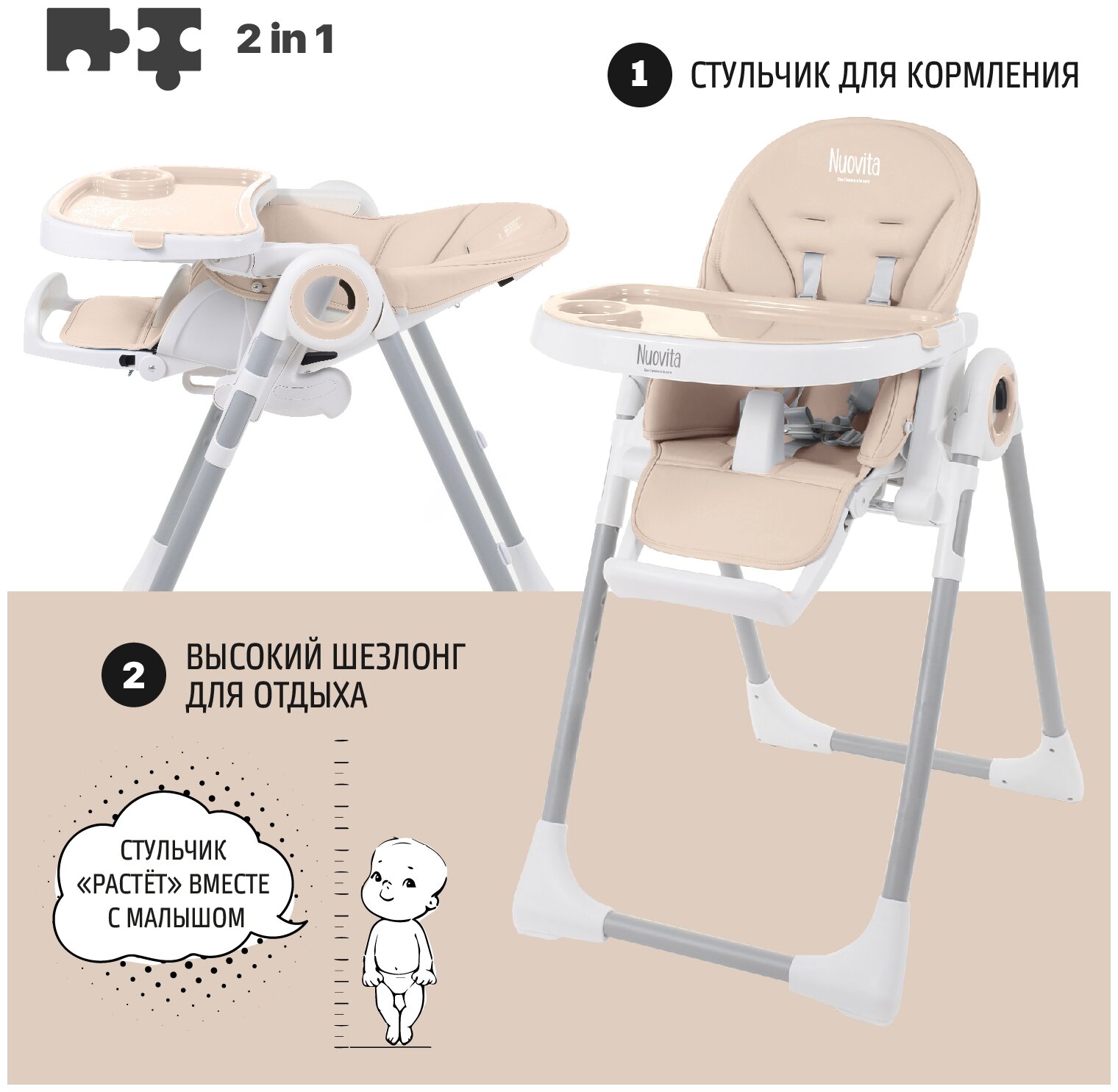 Лучшие цены. Стульчик для кормления Nuovita Grande 2 в 1 - чехол из эко-кожи. 2 колеса для передвижения. 5 уровней наклона спинки. 7 уровней высоты кресла. 3 уровня регулировки подножки. Широкая гамма ярких и стильных расцветок. Стульчик для кормления Nuovita Grande поможет облегчить процесс кормления маленького гурмана, а процесс общения сделать увлекательнее. Особенность стульчика в том, что угол наклона спинки сиденья в 135 градусов позволяет использовать его как шезлонг. Магазины в вашем городе.