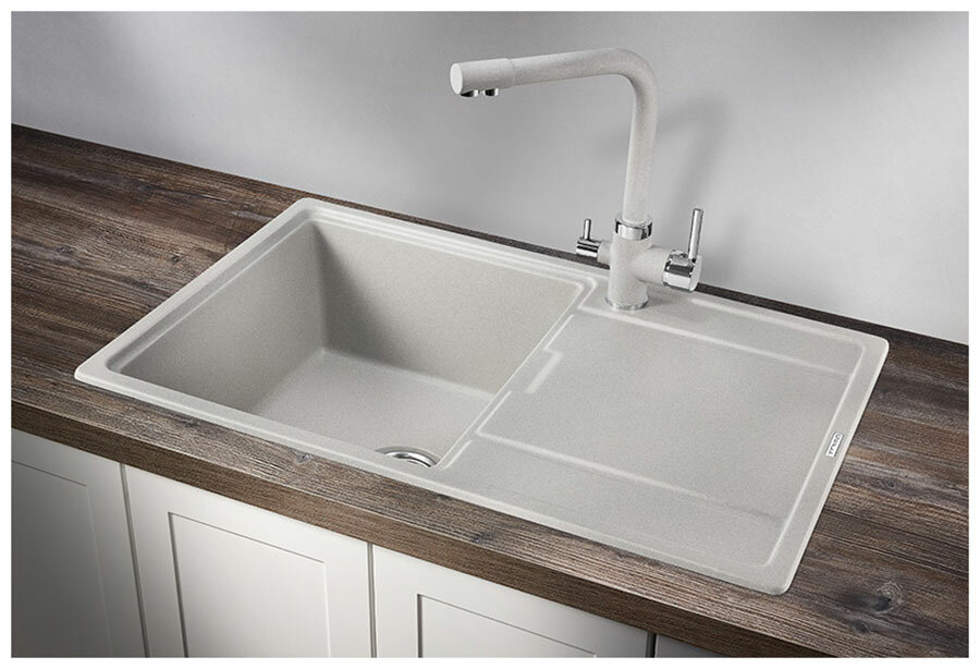 Мойка для кухни Granula 7804, сланец (бледно-серый), врезная, кварцевая, раковина для кухни