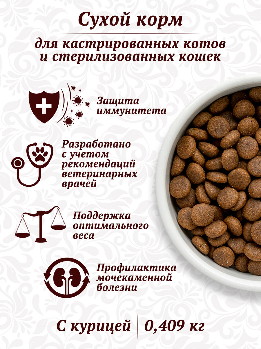 Корм для кошек сухой Родные Корма для взрослых стерилизованных животных всех пород, гранулы с курицей 409г / кошачья еда для ежедневного кормления 385 ₽ Подробнее