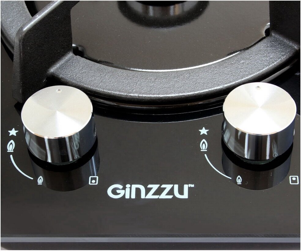 Варочная панель газовая Ginzzu HCG-242, стекло 2 конф, черная, эл.поджиг, газконтроль