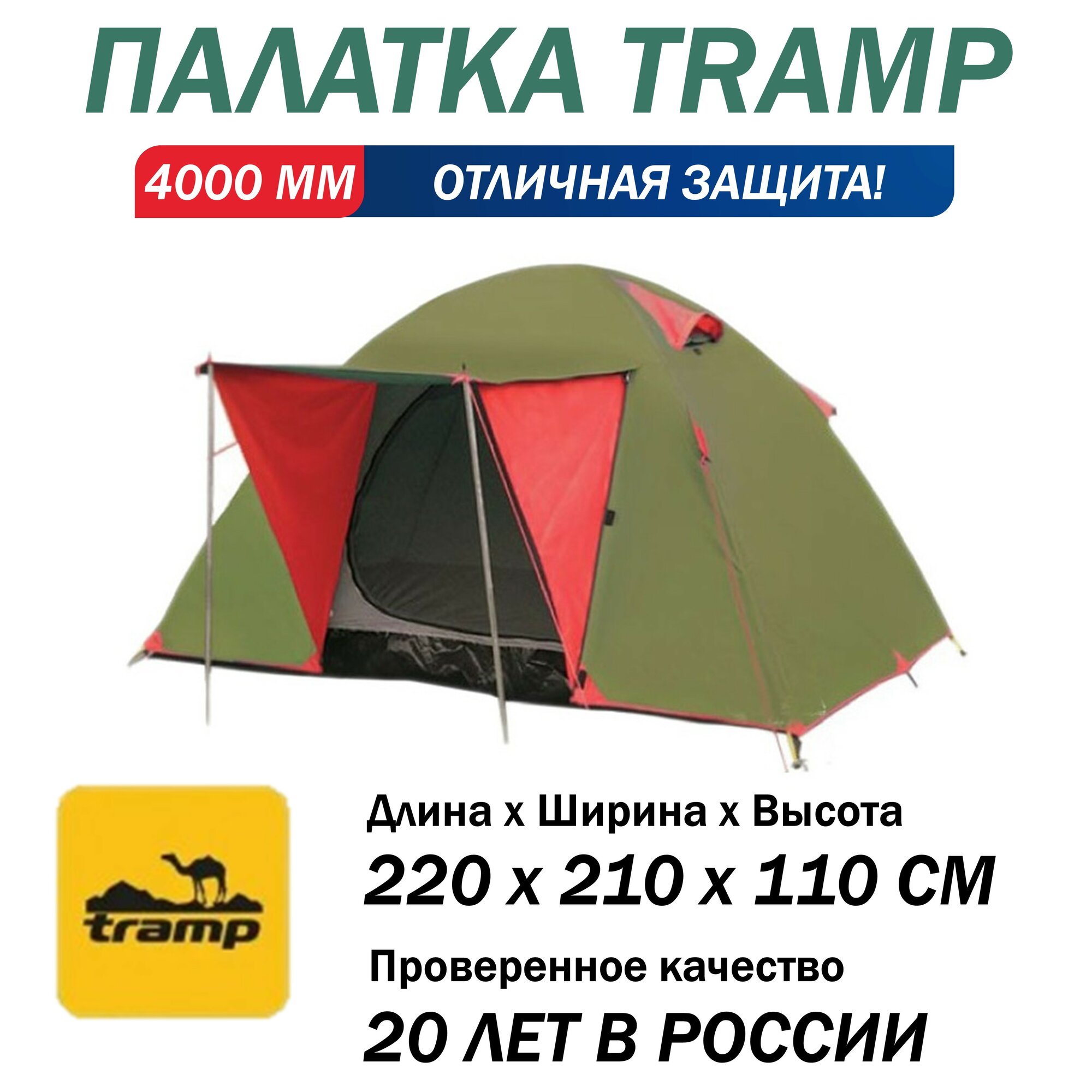 Палатка кемпинговая трехместная Tramp LITE WONDER 3, зеленый/красный