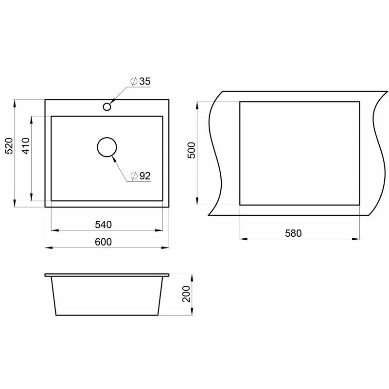 Кухонная мойка GRANULA 6001, кварц, 52см х 60см