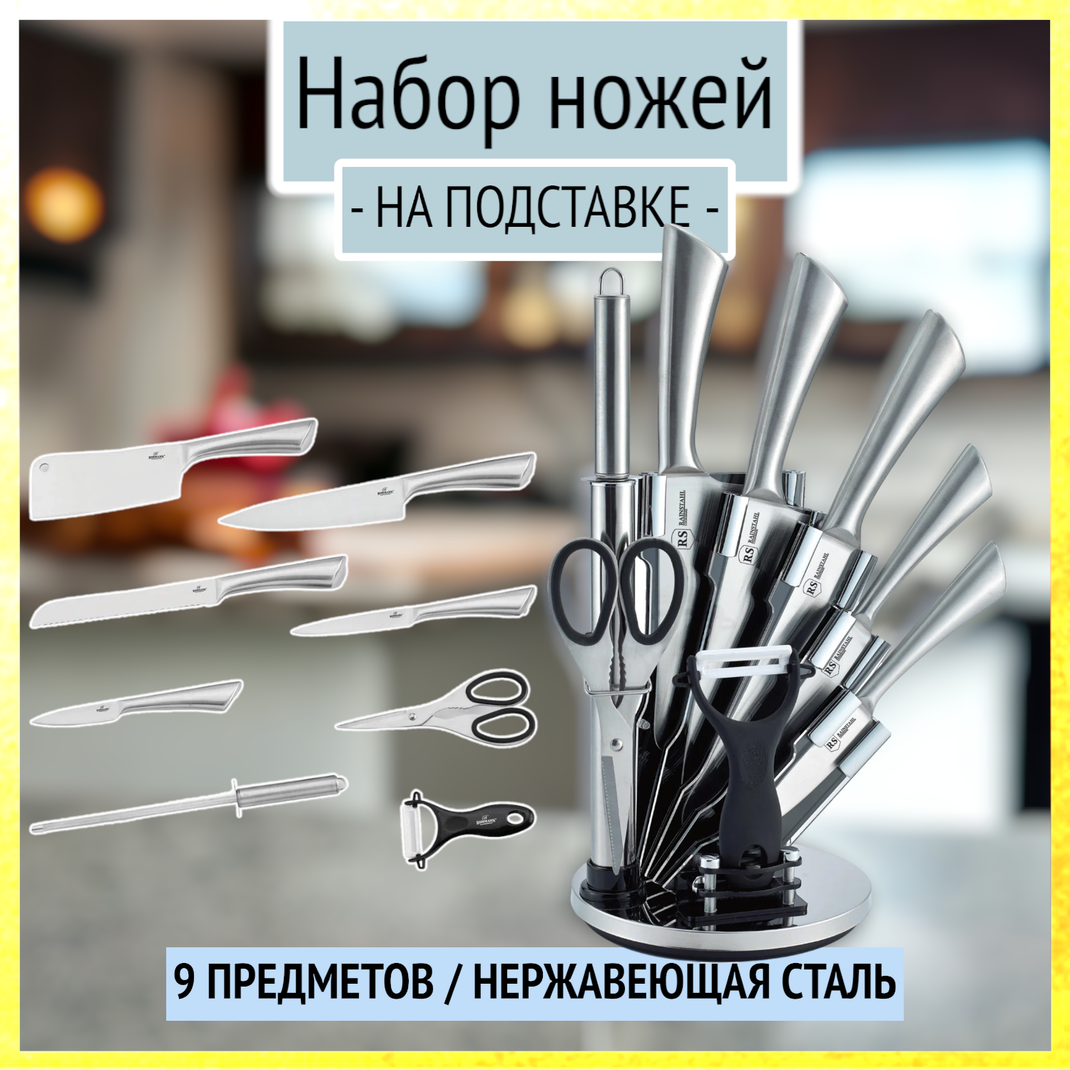 Набор ножей для кухни на подставке Rainstahl из 9 предметов, RS/KN 8004-09