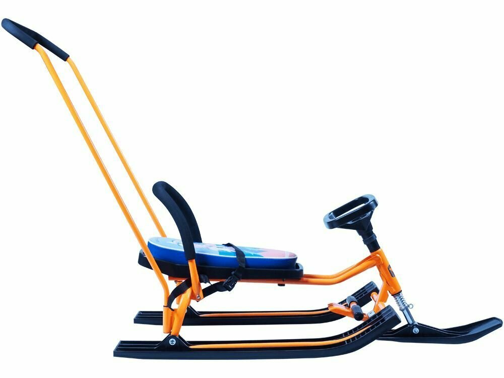 Снегокат детский со спинкой и родительской ручкой-толкателем Барс 140 "Go Go" разборный классический (Волчок)