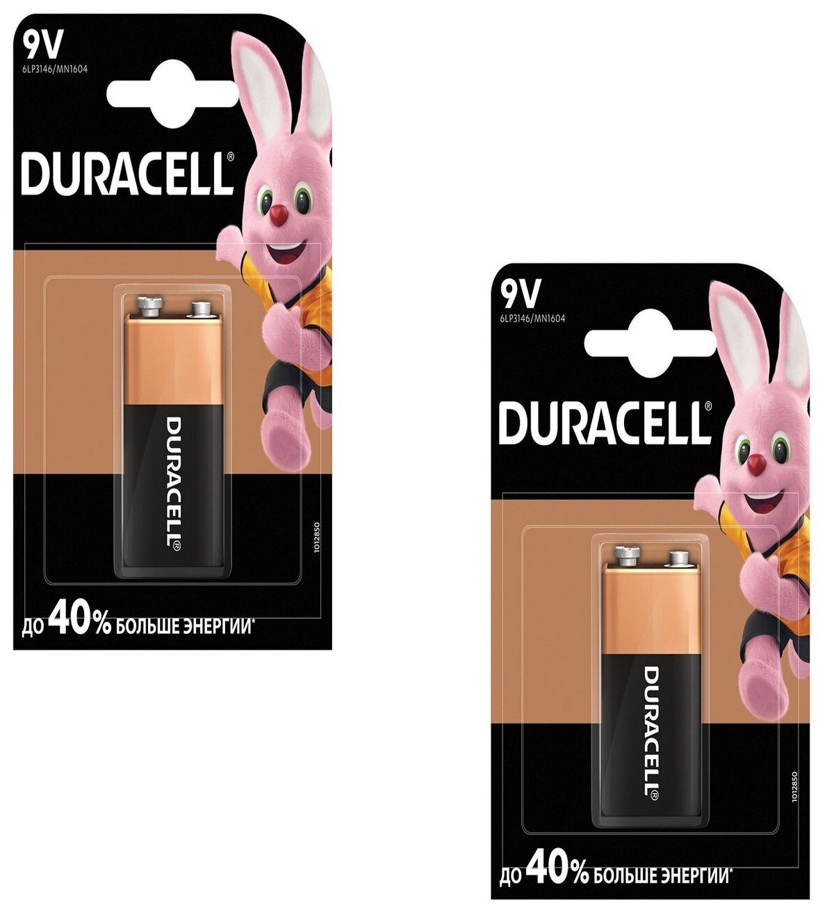 Батарейка Duracell MN1604/6LR61 9В Alkaline крона (комплект из 2 шт)