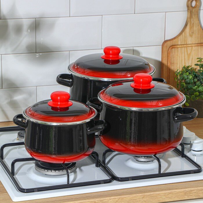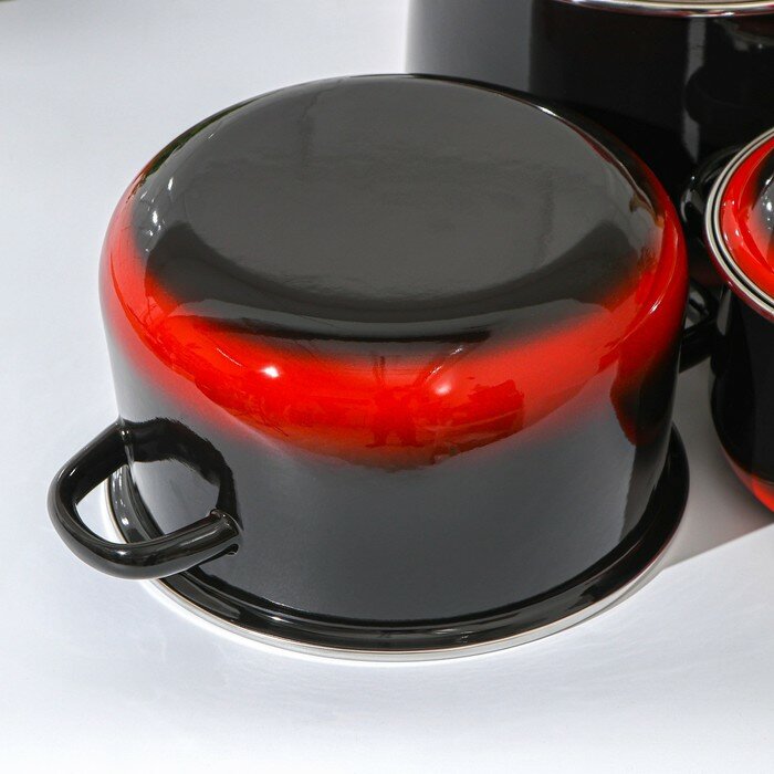 Кастрюля Стальэмаль Набор кастрюль «Кармен», 3 предмета: 2 л, 4 л, 5,5 л, индукция, цвет чёрно-красный