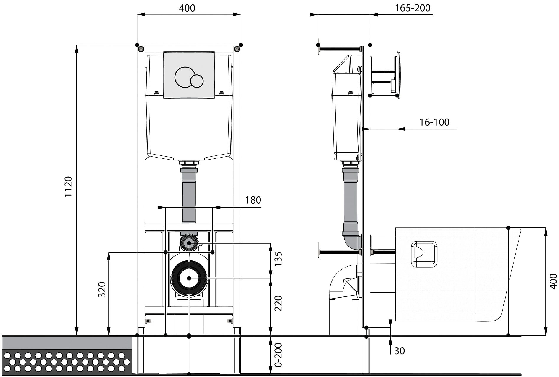 Инсталляция для туалета Santek Нео 1WH302463 с горизонтальным выпуском