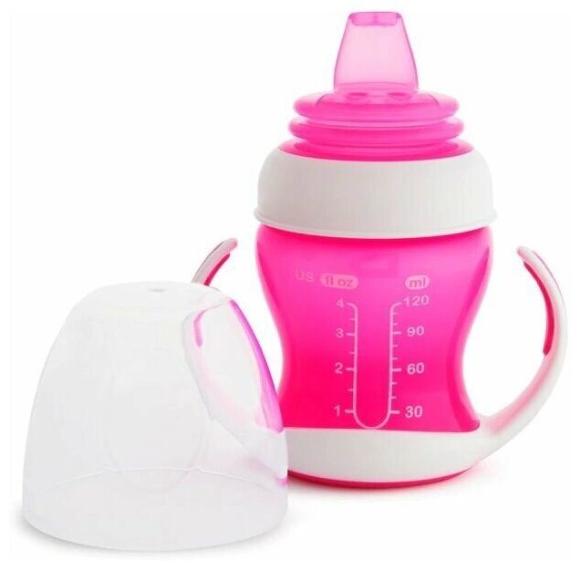 Лучшие цены. Munchkin обучающий поильник-чашка с ручками Этот обучающий поильник — лучший помощник при переходе ребенка к взрослой чашке! Мягкий и гибкий носик обеспечивает простой и быстрый доступ к напитку; он движется в том направлении, в котором ребенок пьет. Эргономичная форма и удобные ручки созданы специально для маленьких рук. Ручки поильника, при необходимости, можно снять. Особое гибкое основание носика, напоминающее гармошку, позволяет без труда держать поильник под углом и пить, не разливая содержимое. Магазины в вашем городе.