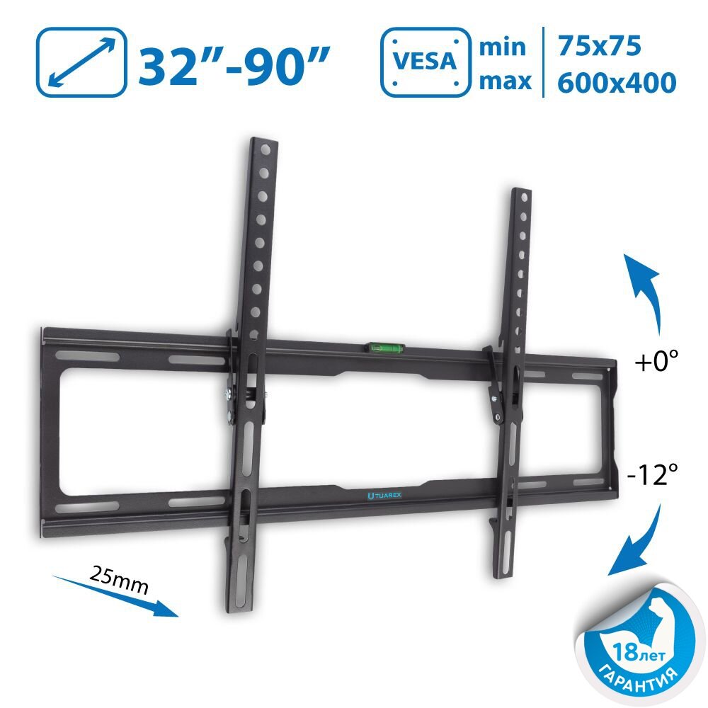 Кронштейн Tuarex OLIMP-112, для ТВ, наклонный, 32-90", до 40 кг, 25 мм, черный