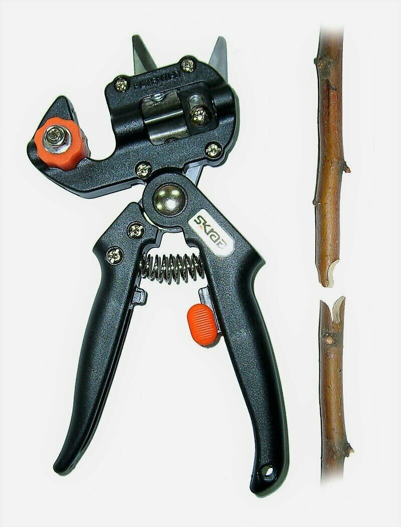 Лучшие цены. Прививочный секатор 5-12 мм При корректном применении с помощью прививочного секатора можно добиться до 90-100% результативных прививок. Алгоритм работы: Лезвием специальной формы делаются срезы на ветках на привое и подвое. В результате срезы получаются идеального качества, привой и подвой прекрасно подходят друг к другу. Их остаётся только закрепить выбранным ранее способом (обмотать специальной или изоляционной лентой для предохранения от бактерий и неблагоприятных погодных условий). Магазины в вашем городе.