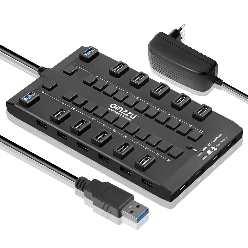 Разветвитель USB GINZZU GR-328UAB 28 портов (4xUSB 3.0 + 24xUSB 2.0 + адаптер) черный (GR-328UAB)