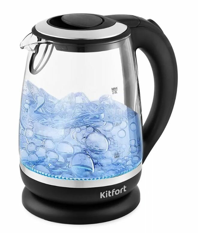 Чайник электрический Kitfort KT-655, стекло, 1.5 л, 2200 Вт, чёрно-серебристый