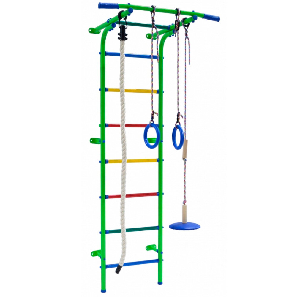 Спортивный комплекс на базе шведской стенки Формула здоровья Start mini (Салатовый радуга) - пристенный ДСК для дома
