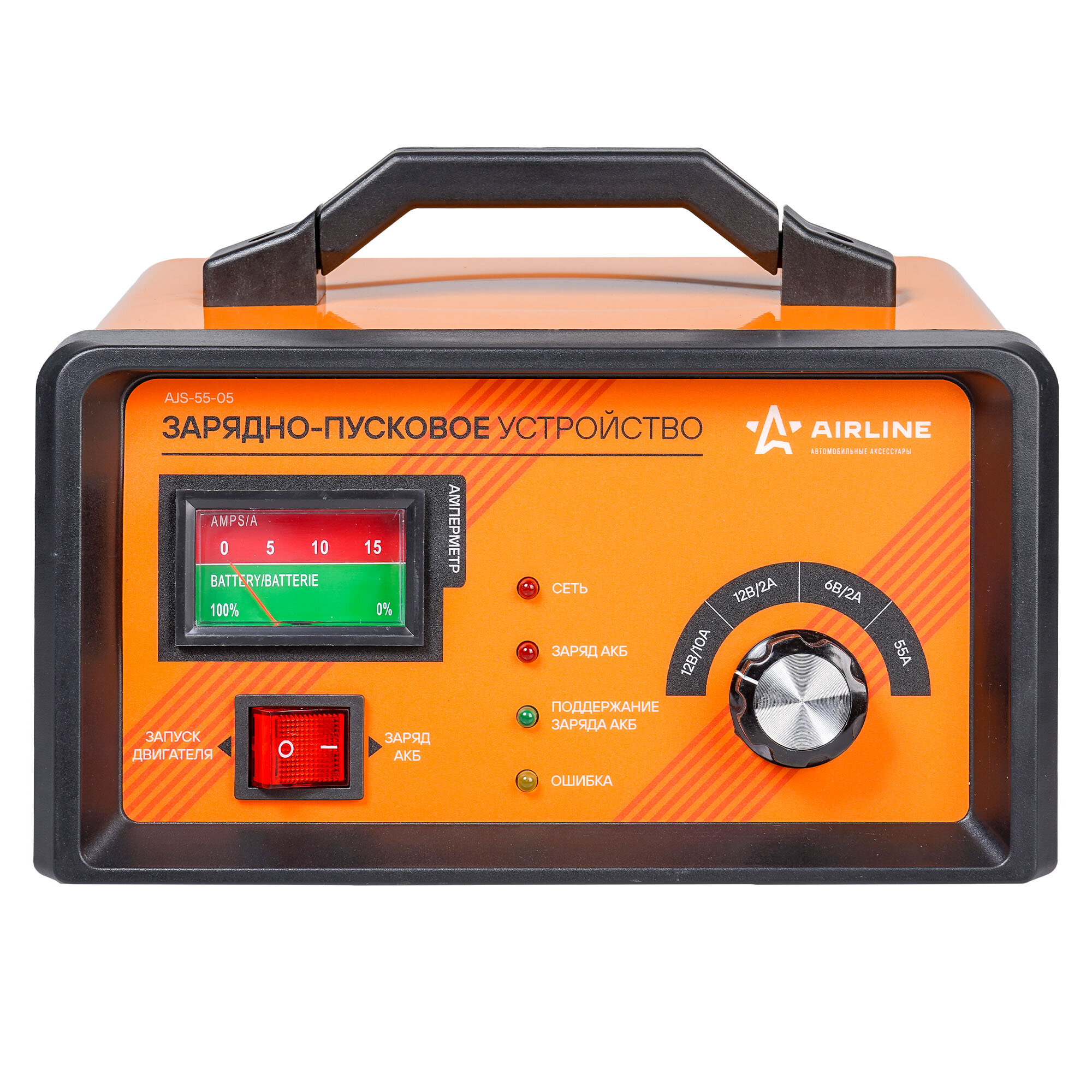 Лучшие цены. Трансформаторное зарядно-пусковое устройство 2/10/55А 6В/12В Airline AJS-55-05 предназначается для эффективной зарядки и запуска автомобильных и мотоциклетных АКБ любого типа. Стрелочный амперметр позволяет визуально контролировать величину тока. На панели управления располагается специальный индикатор, который сигнализирует об окончании заряда. Лаконичный дизайн и небольшой вес обеспечивают удобство хранения и транспортировки. Магазины в вашем городе.