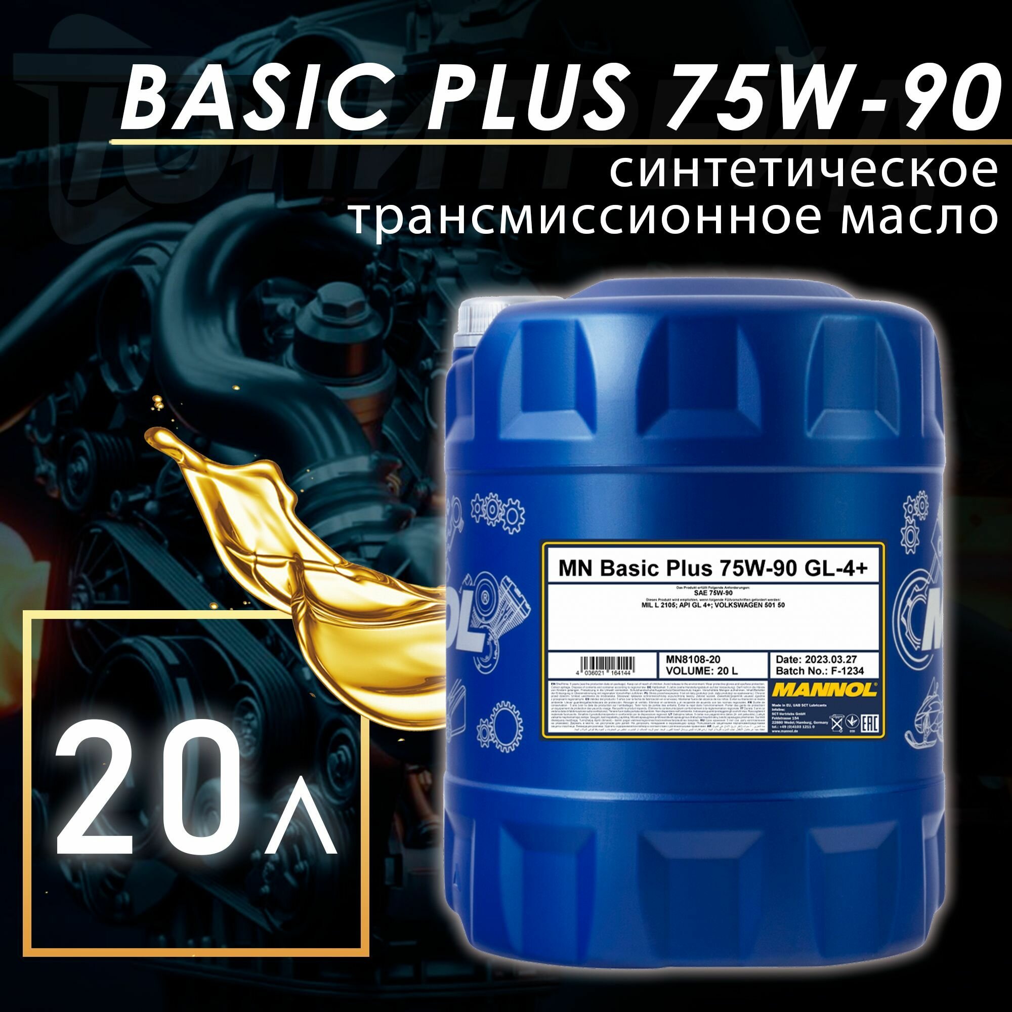 Лучшие цены. MANNOL MN810820 8108-20 MANNOL BASIC PLUS GETRIEBEOEL 75W90 20 л. Синтетическое трансмиссионное масло 75W-90. Магазины в вашем городе.
