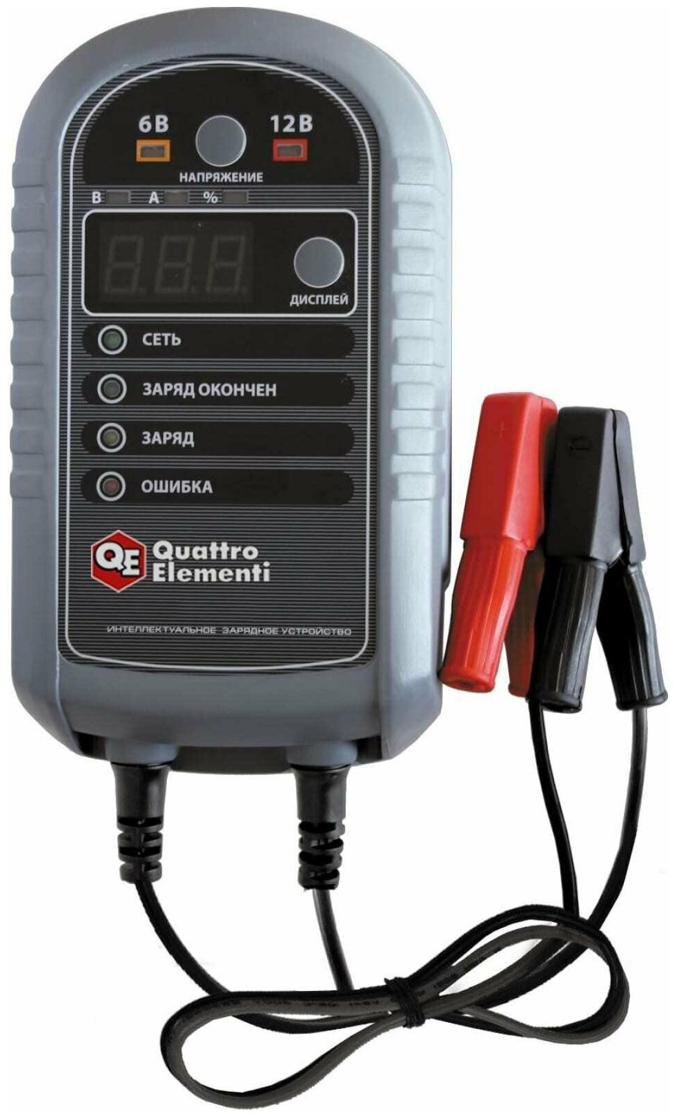 Лучшие цены. Зарядное устройство QUATTRO ELEMENTI i-Charge 7 полный автомат 771-695 благодаря схеме, основанной на высокочастотном преобразовании бережно снабжает аккумуляторные батареи автомобилей и мотоциклов качественным электрическим зарядом. Подключение к аккумулятору производится посредством специальных зажимов (крокодилов), которые обеспечивают надежный контакт без потери тока номинальным значением 2.5 А и 3 А для двух режимов - 6В и 12 В соответственно. Магазины в вашем городе.