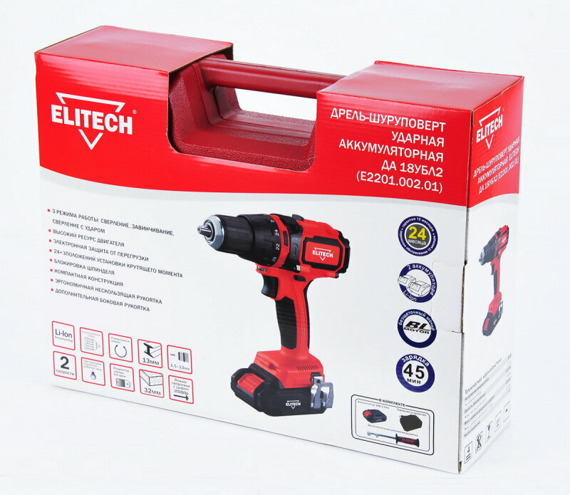 Аккумуляторная ударная дрель-шуруповерт ELITECH ДА 18УБЛ2 (Е2201.002.01)