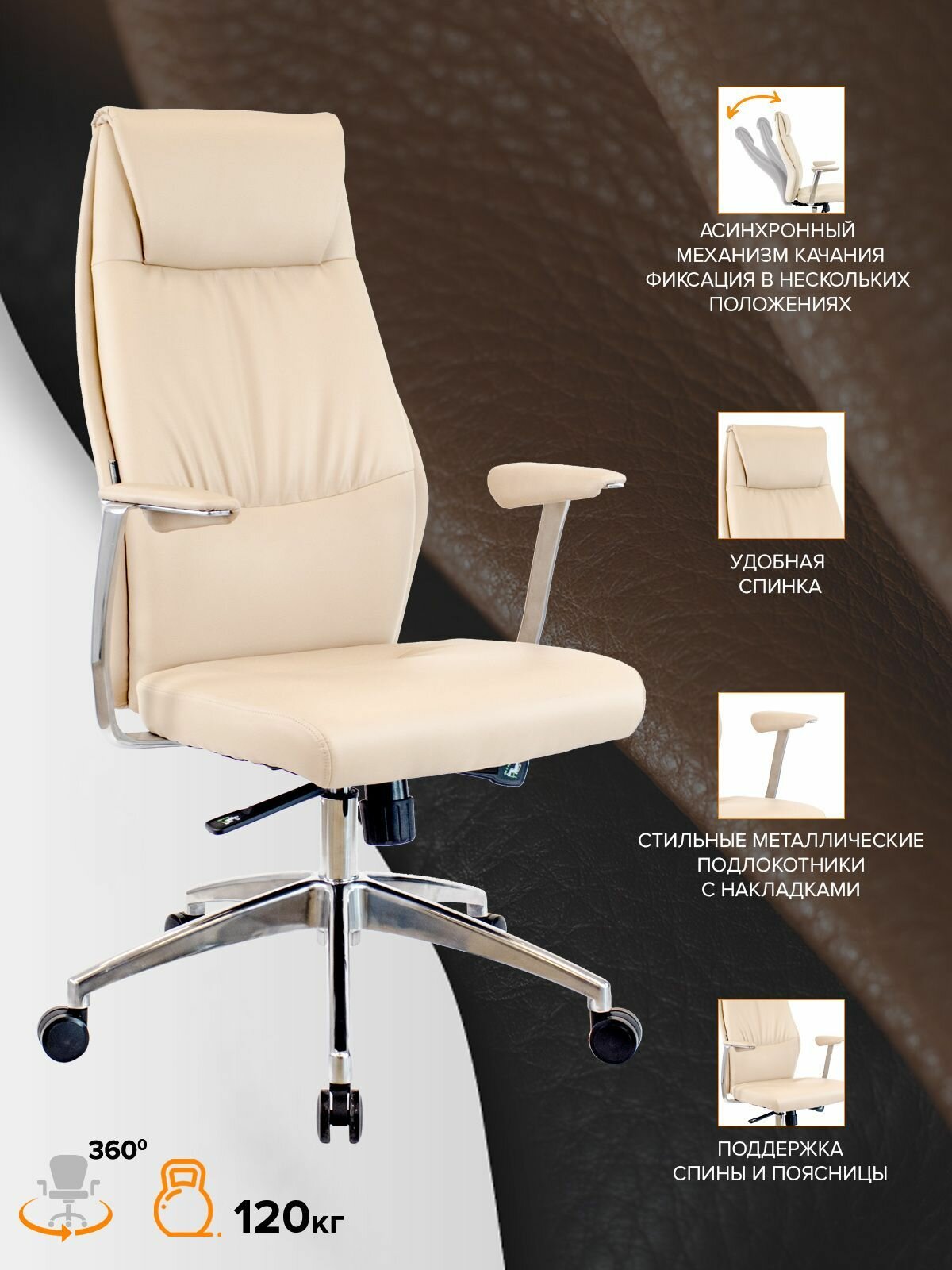 Лучшие цены. Бренд Everprof Артикул EP-751 PU Beige Материал обивки Экокожа Каркас Немонолитный Подголовник Да Поясничная поддержка Да Подлокотники Металлические с накладками из экокожи Механизм качания С асинхронным отклонением сидения и спинки в соотношении 1:3, а также фиксацией кресла в нескольких положениях Крестовина Полированный алюминий Регулировка высоты Газлифт Ролики Стандарт BIFMA 5.1 (США). Магазины в вашем городе.
