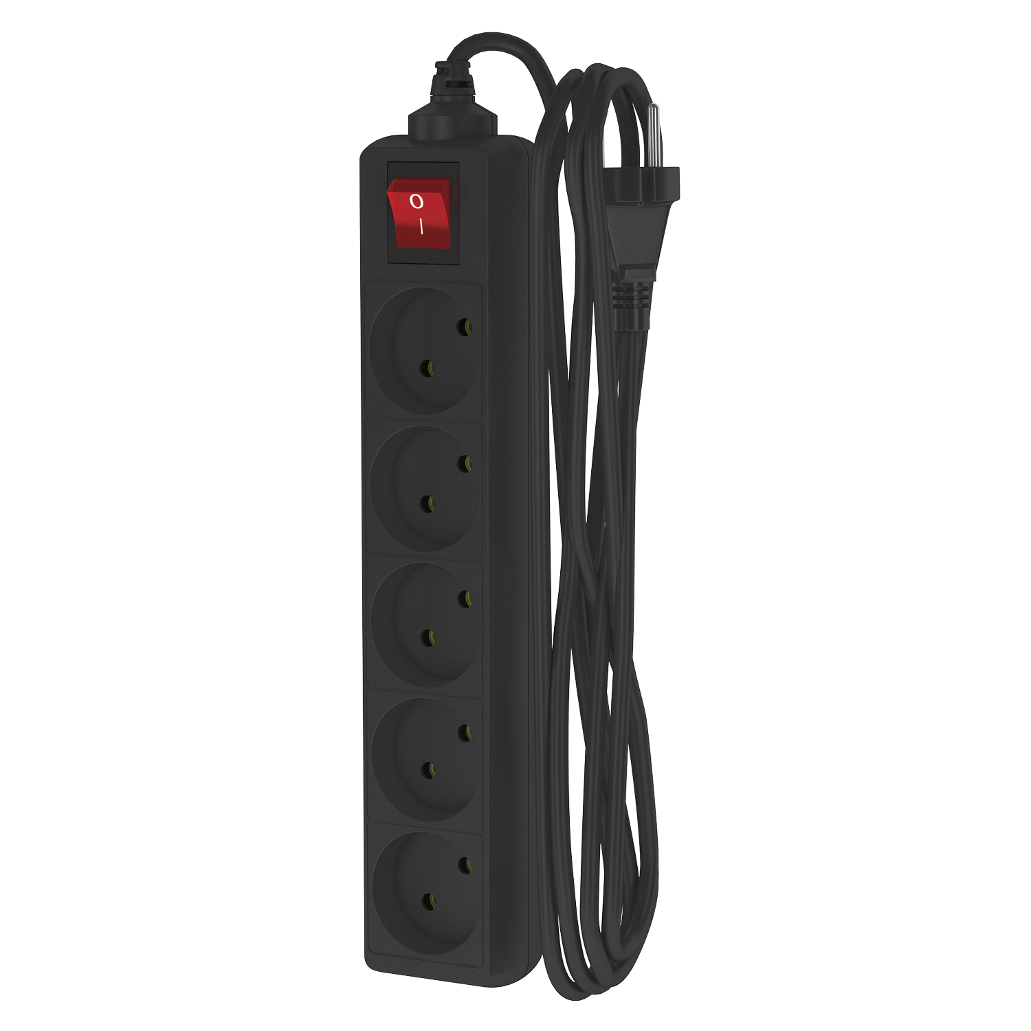 Сетевой удлинитель "фотон" 10-25S, 2 м, 5 розеток, 10 А, с выключателем, чёрный