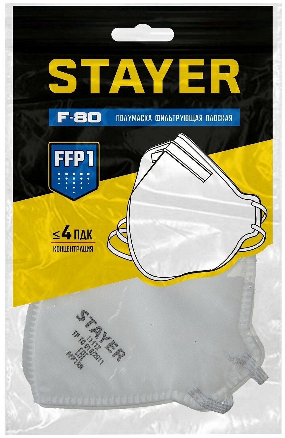 Маска медицинская STAYER F-80, класс защиты FFP1, плоская, фильтрующая полумаска (11112)