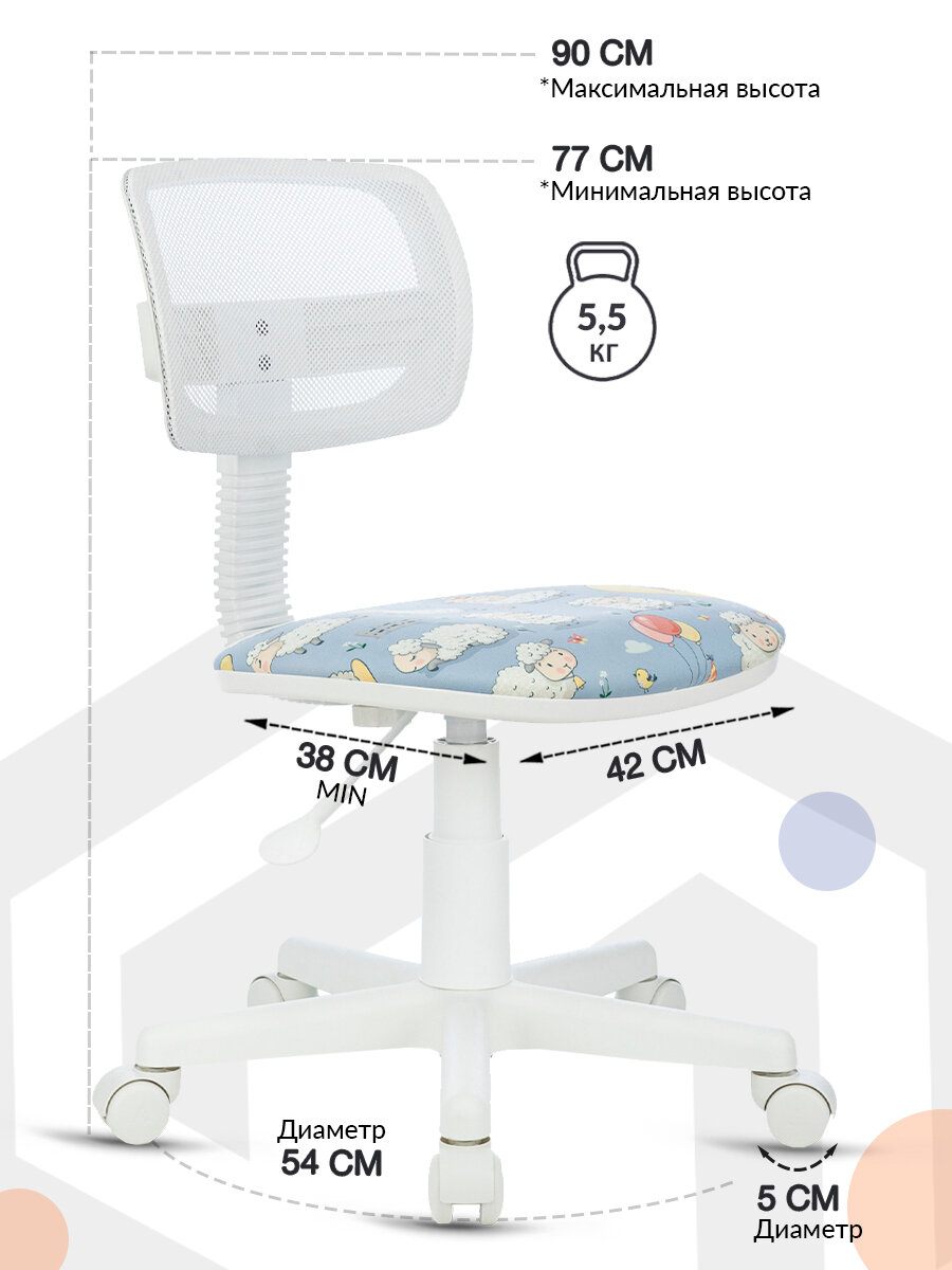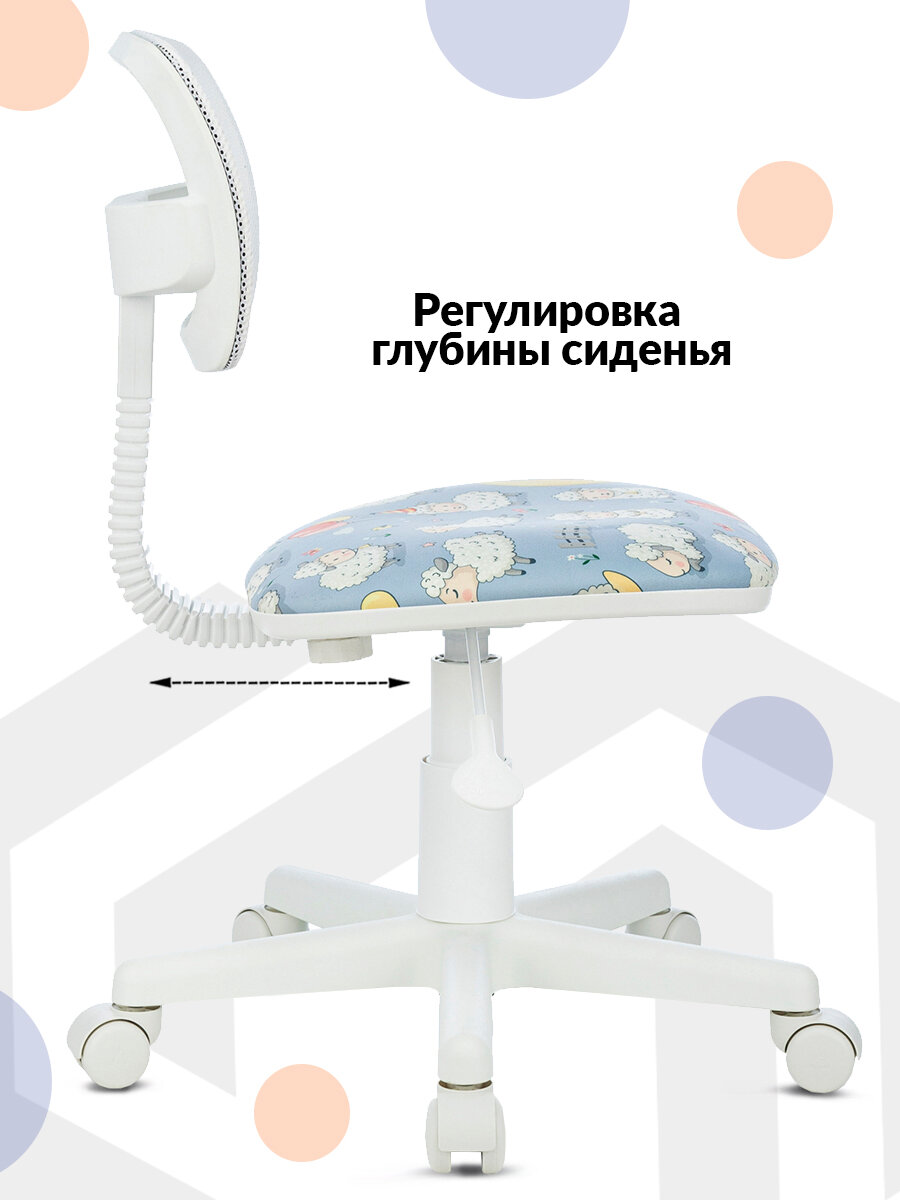 Компьютерное кресло Кресло детское Бюрократ CH-W299 белый TW-15 сиденье мультиколор овечки, крестовина пластик белый / Компьютерное кресло для ребенка, школьника, подростка