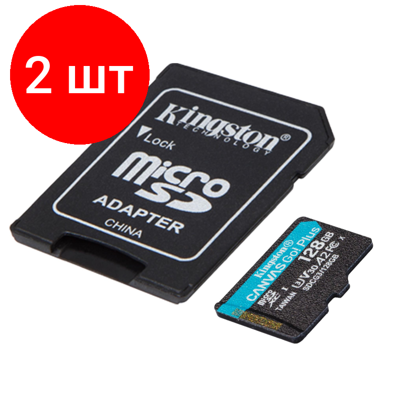 Карты памяти Комплект 2 штук, Карта памяти Kingston Canvas Go! Plus microSDXC UHS-I Cl10+ад (SDCG3/128Gb)