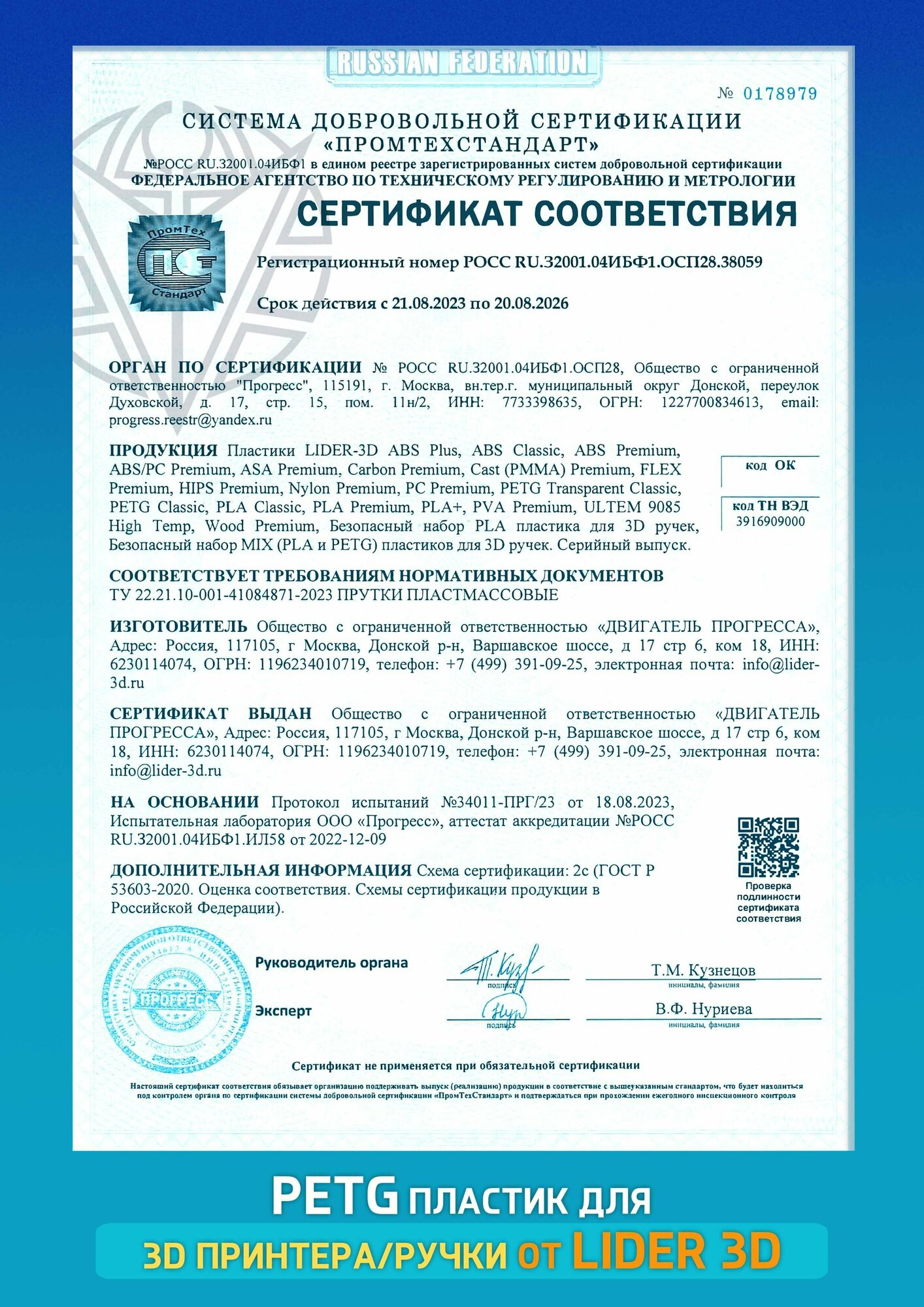 PETG пластик LIDER-3D для 3D принтера 1.75 мм, Переходный, 1 кг 1 490 ₽ Подробнее
