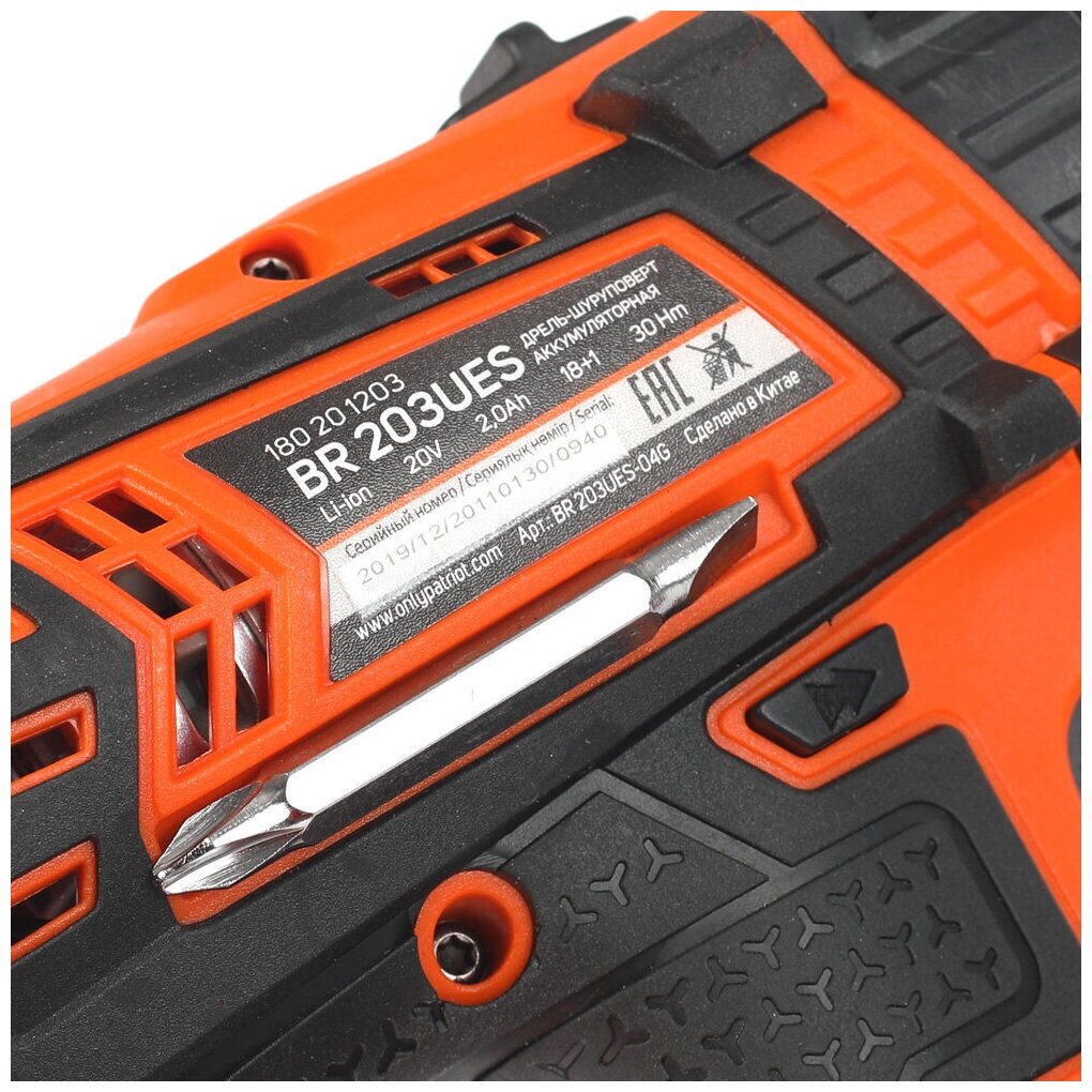 Дрель-шуруповерт аккумуляторная Patriot BR 203UES, 20 B, 2 x 2 Ач Li-ion, ЗУ