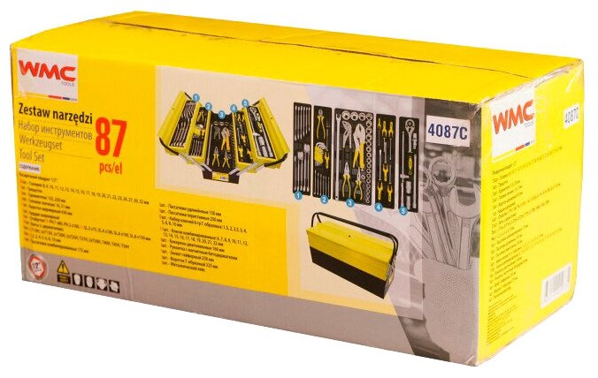 Набор инструмента WMC-4087C: 87пр. в металлическом складном кейсе WMC TOOLS