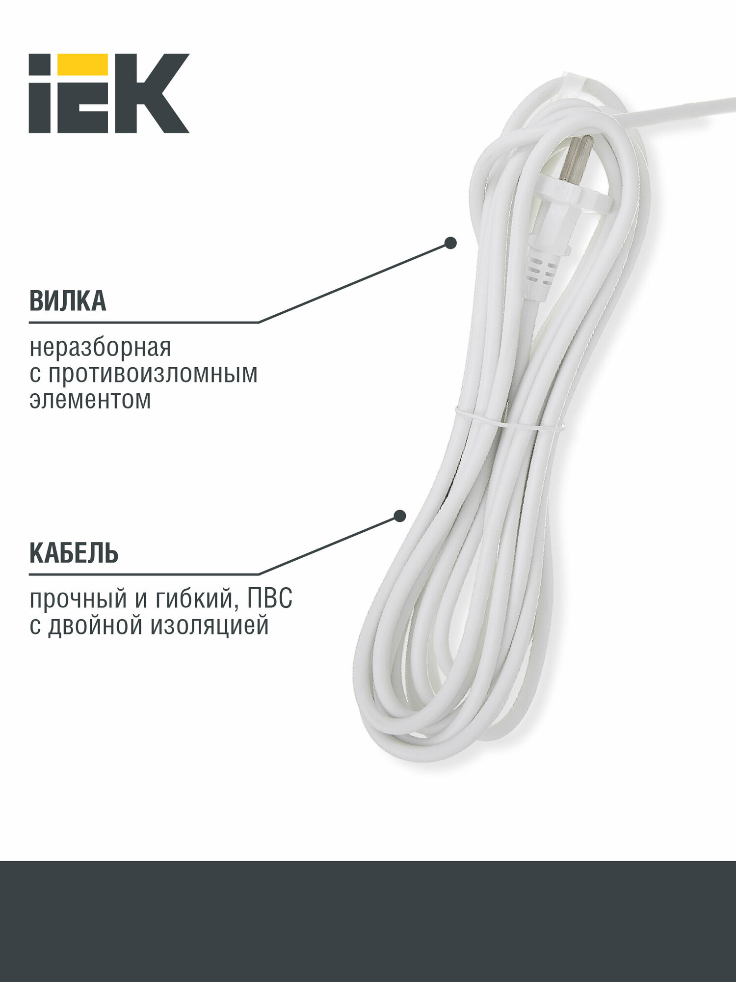 Удлинитель IEK WYP10-06-05-05-N, 5 розеток, 5 м, б/з, 10А / 2000 Вт белый