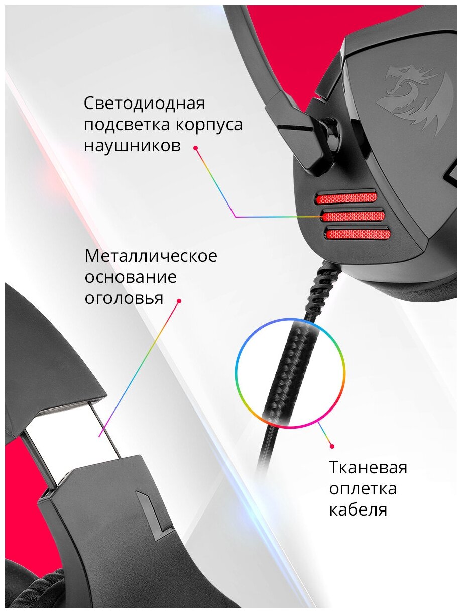 Наушники Игровая гарнитура Defender Redragon Theseus красный + черный, кабель 2 м
