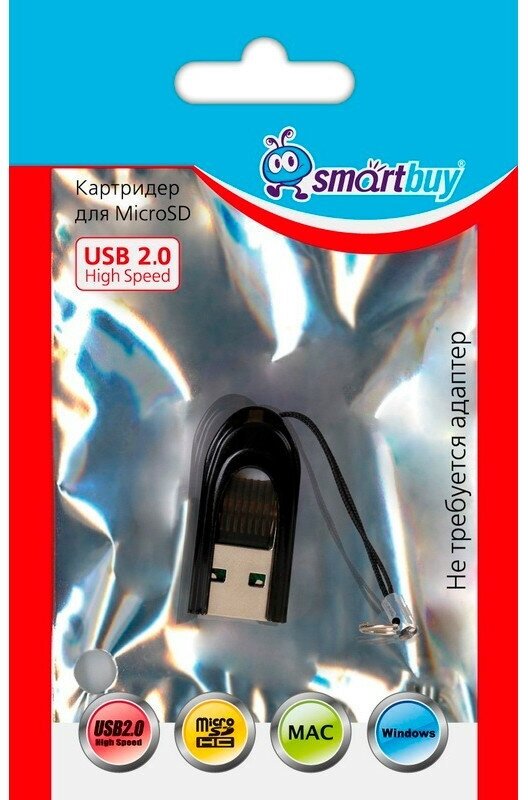 Лучшие цены. Считыватель SmartBuy SBR-710-K быстро работает и поддерживает самые распространенные форматы карт памяти. Металлический корпус рабочей части прибора обеспечивает стойкость и надежность конструкции, а пластмассовый колпачок защищает интерфейс от возможных механических повреждений и воздействия пыли и влаги. Для того чтобы карт-ридер всегда на рабочем месте был рядом, применяется встроенный ремешок, позволяющий носить на шее этот компактный прибор. Магазины в вашем городе.