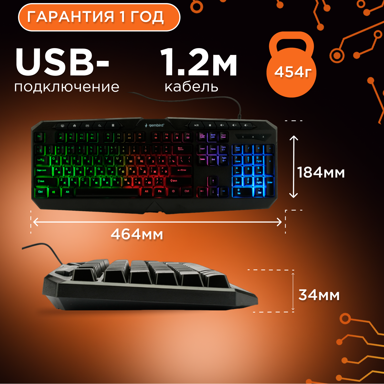 Игровая клавиатура с подсветкой Gembird KB-G420L, подсветка Rainbow 887 ₽ Подробнее