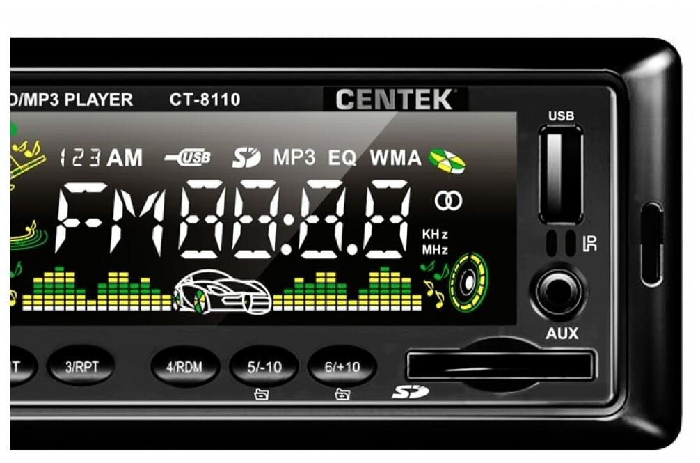 Лучшие цены. Автопроигрыватель Centek СТ-8110 оснащен незаменимым выходом USB, позволяющим подключить к нему различные носители для последующего воспроизведения ваших любимых композиций. Характерная особенность устройства заключается в наличии 4 каналов, обеспечивающих качественное звучание. В модели Centek СТ-8110 появился встроенный FM-тюнер, незаменимый для воспроизведения композиций с радиостанций. Типоразмер проигрывателя – 1 din, вам потребуется учесть данный параметр перед его установкой в автомобиль. Магазины в вашем городе.