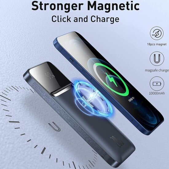 Портативный аккумулятор BASEUS Magnetic Wireless Quick Charging Power Bank 10000mAh 20W – Blue PPMT-03 2 490 ₽ Подробнее
