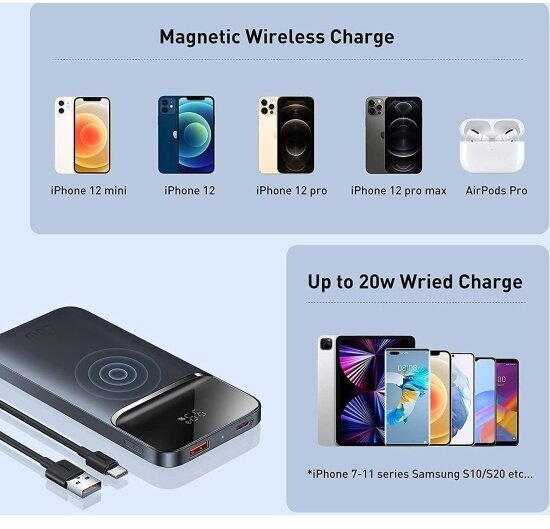 Powerbank с беспроводной зарядкой Baseus Magnetic 1USB/USB-C 10000mAh 20W (PPMT-03) черный 4 302 ₽ Подробнее