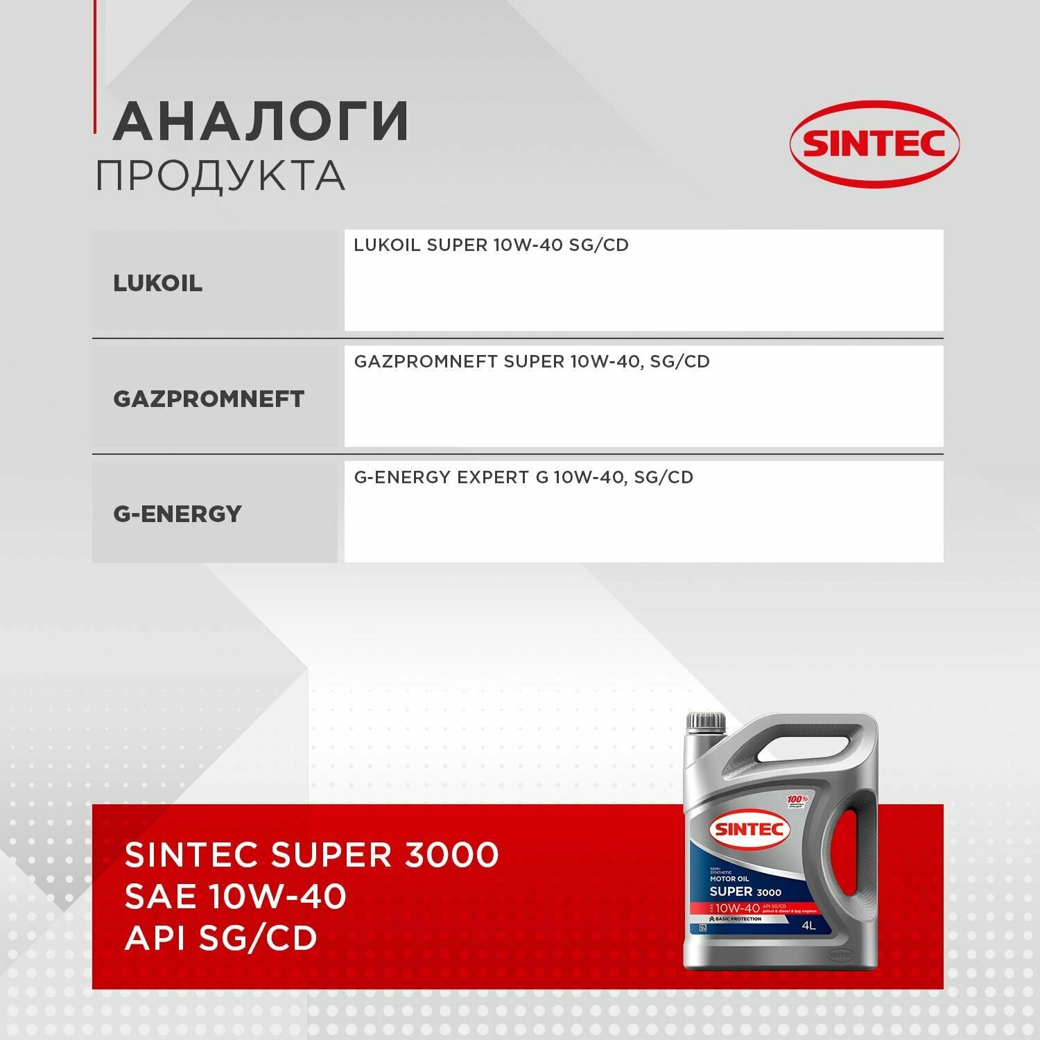 Sintec : 600293 Super 3000 SAE 10W40 SG/CD 5 л.