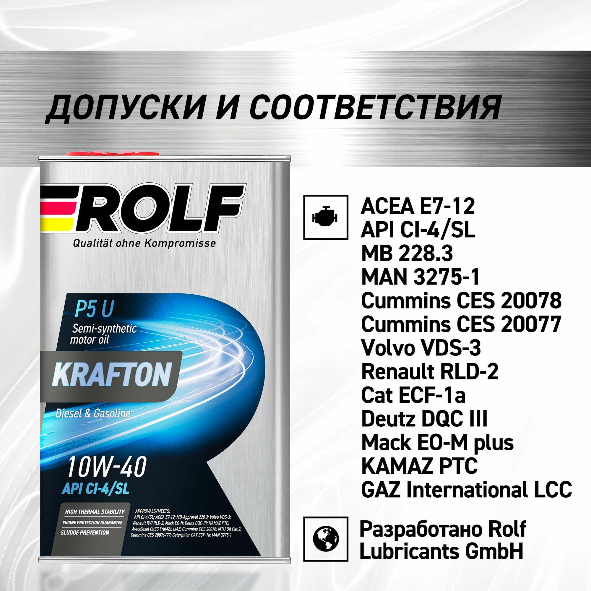 Моторное масло ROLF KRAFTON P5 U 10W-40 CI-4/SL полусинтетическое 4 л