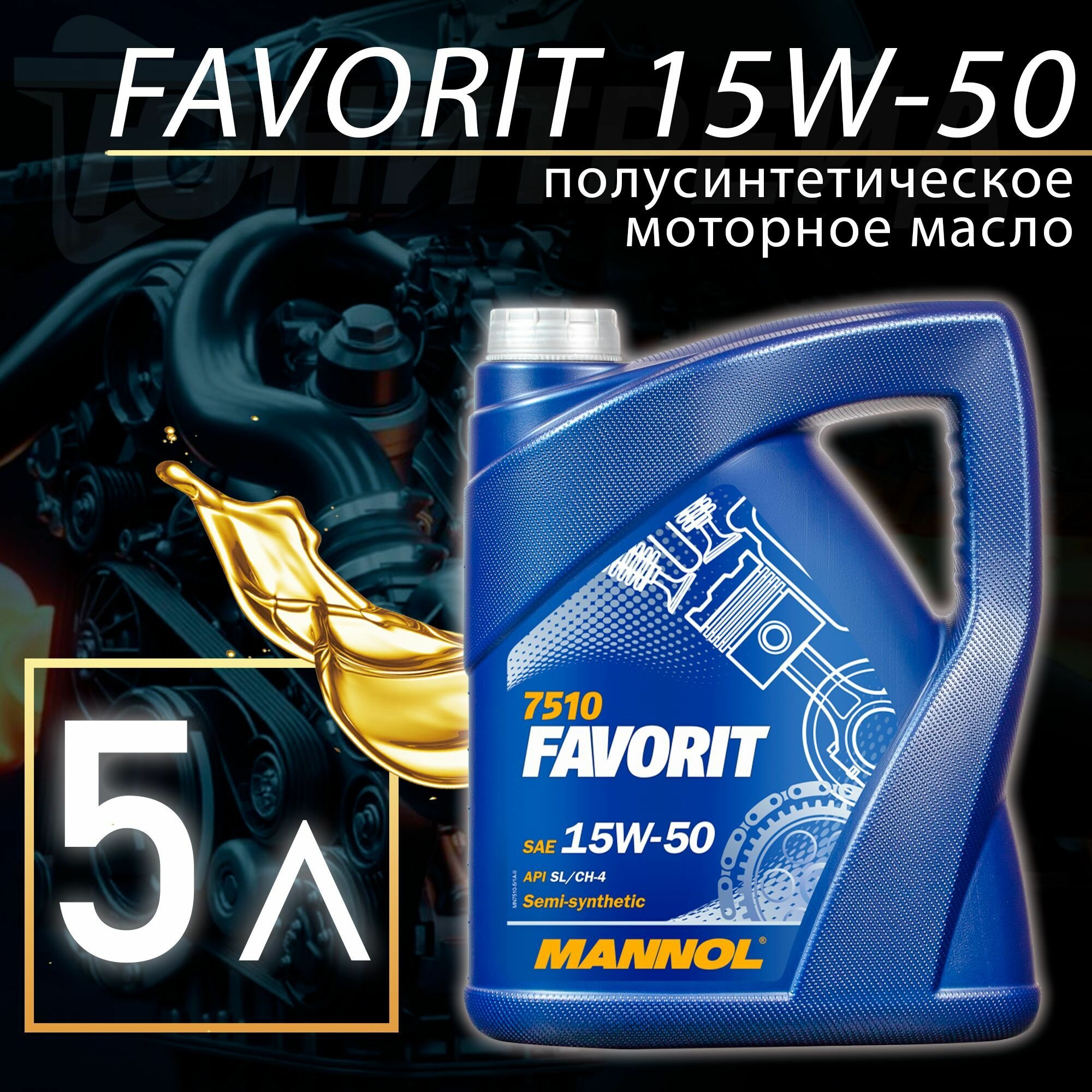 MANNOL 7510-5 Mannol Favorit 15w50 5 Л. Полусинтетическое Моторное Масло 15w-50 2 410 ₽ Подробнее