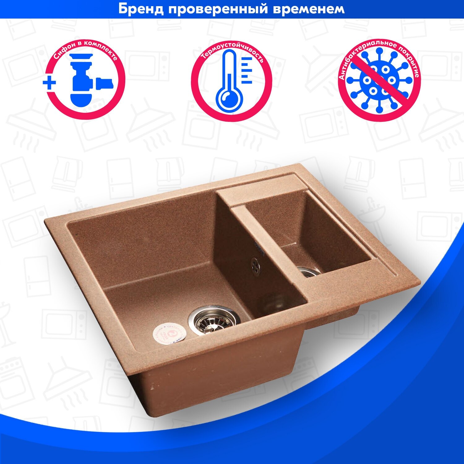 Мойка кухонная прямоугольная Granfest Quadro (Q-610K терракот) 8 800 ₽ Подробнее